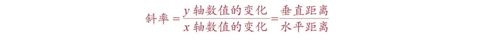 所以,在图2A.4中,我们看到两个变量之间存在正相关关系。那这种正相关关系的程度如何?我们用斜率来表示。 斜率 等于 y 轴所示变量的数值变化除以 x 轴所示变量的数值变化: