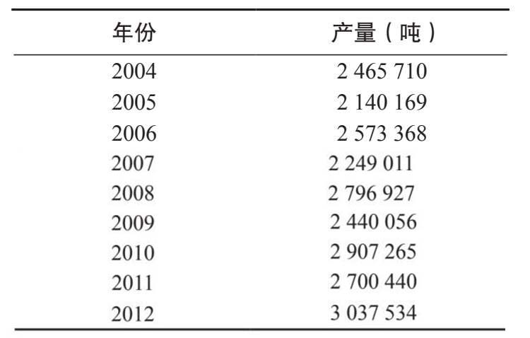 A2. 下表中数据显示了巴西2004—2012年的咖啡产量。