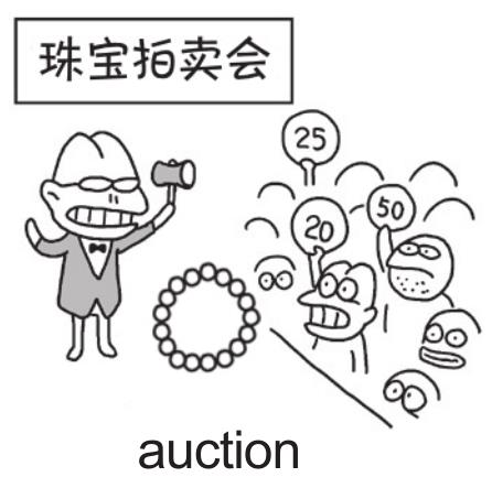 词根记忆 auc(增加)+tion(名词后缀)→价钱逐渐增加的过程→拍卖