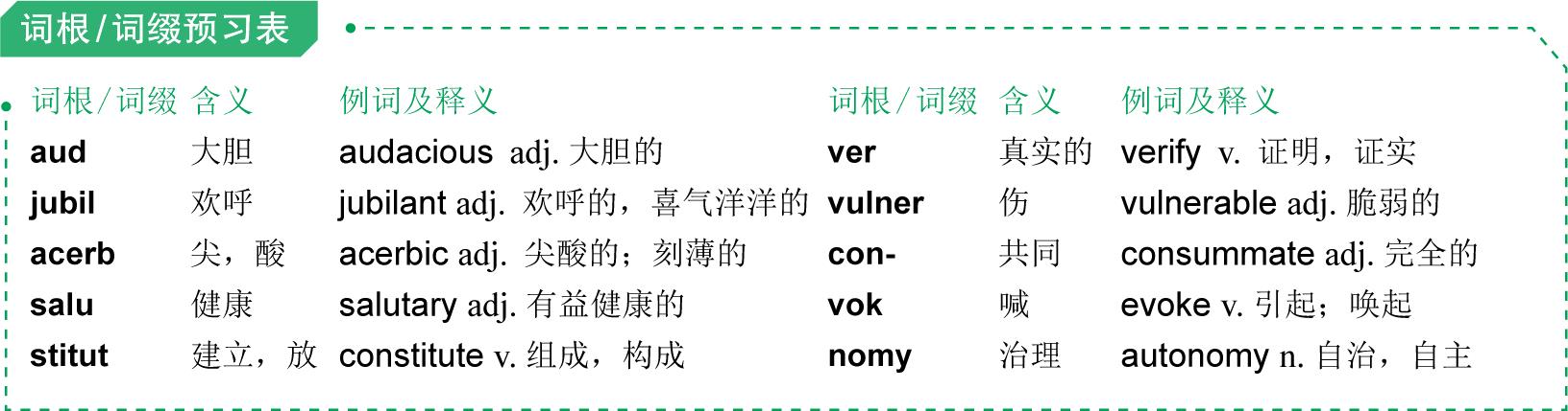 记 词根记忆:aud(大胆)+acious(多…的)→大胆的