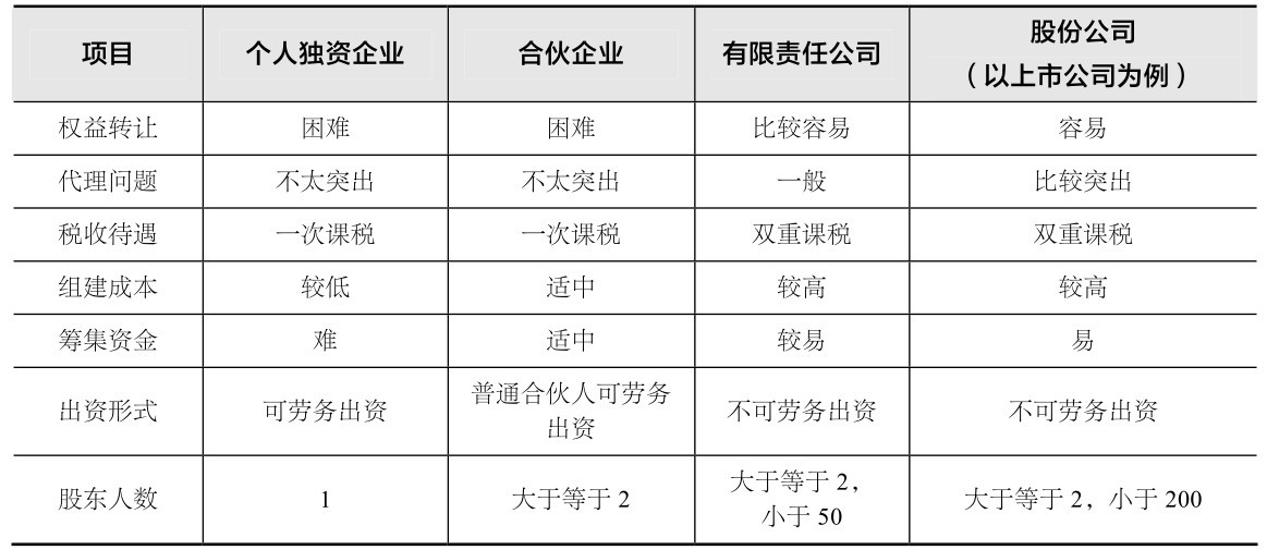 2.选择公司制还是合伙制,具体而言,还需要考虑到企业目标并结合以下几个维度(见表1-2)对企业财务管理带来的影响做出选择。