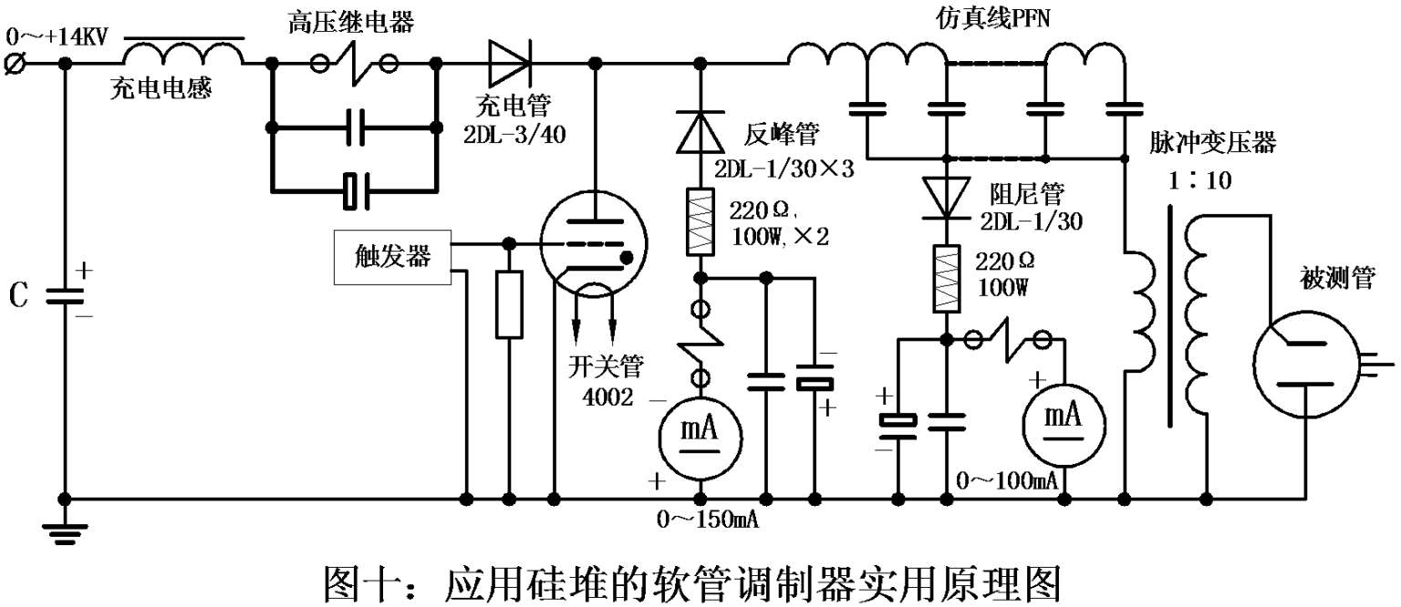 对于硅堆在大功率调制器中的应用,长期以来,受到不少同事的关注。也曾进行过讨论,做过有关试验,但未得出肯定的结论。从英国引进的设备看,其充电管用的是硅雪崩型整流二极管。AD报告中曾报道过一个“平均功率 1 兆瓦的脉冲调制器”中也有选用整流臂串并联充当充电二极管失败的情况,后又用风冷真空二极管代替之。(“A one-MW AVerage-power pulse Modulator”,AD676,854,10th Modulatory Symposium,P326—336)