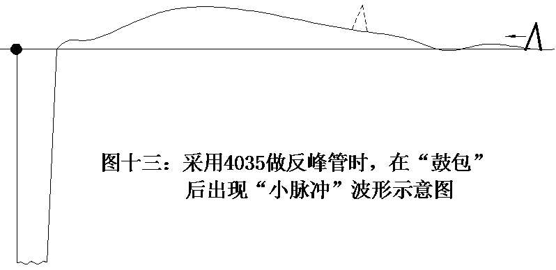 另外,用XX35 管做反峰管时运行不稳定的情况可用在测试工作中碰到“鼓包”之后出现“小脉冲”的事实解释说明。见图(十三)。