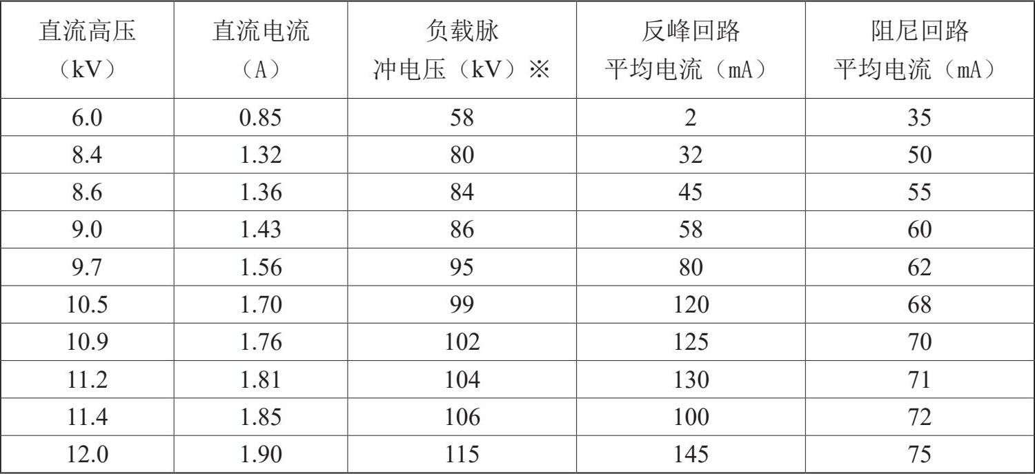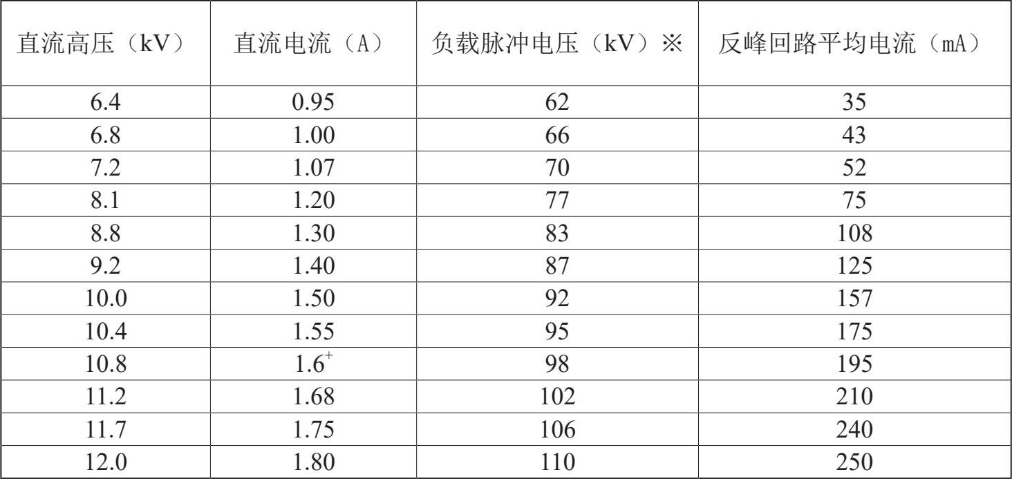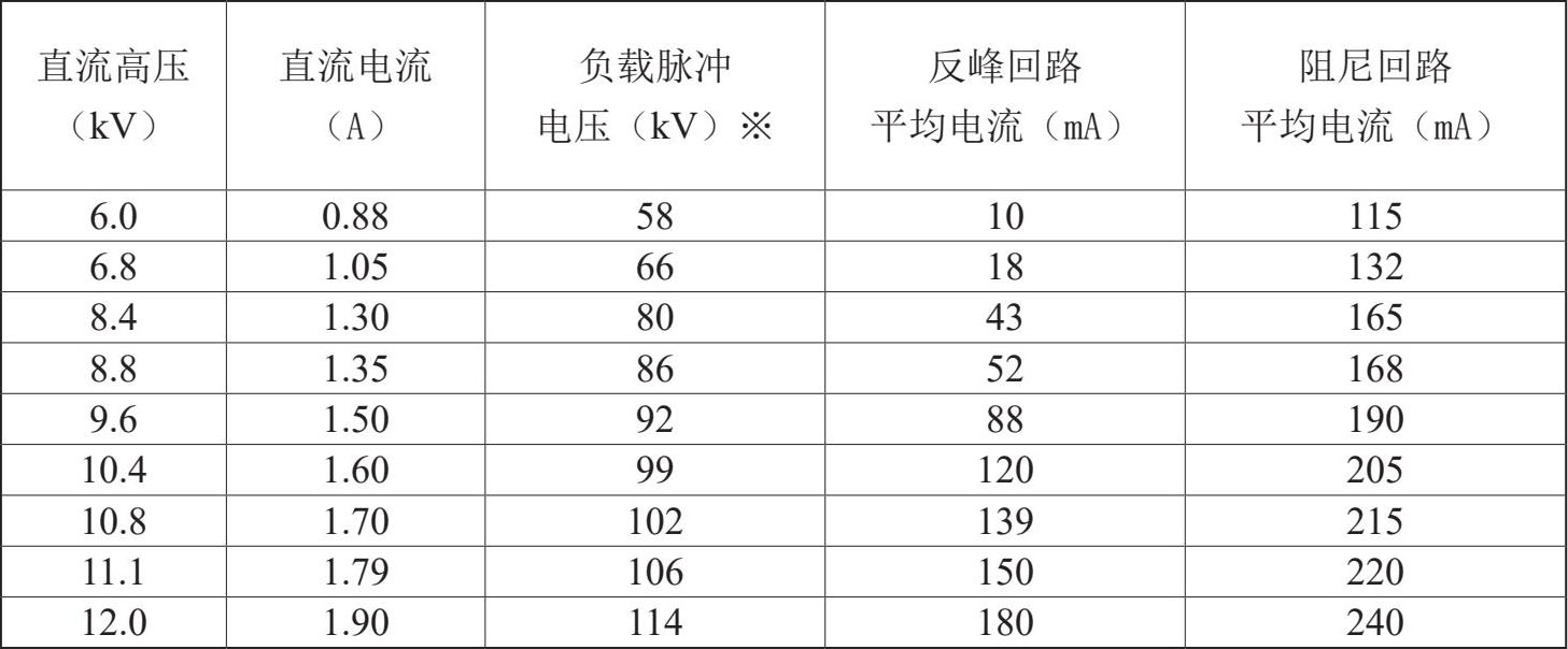 阳极反向脉冲电压≤33kV;阳极正向电压≥ 3kV;