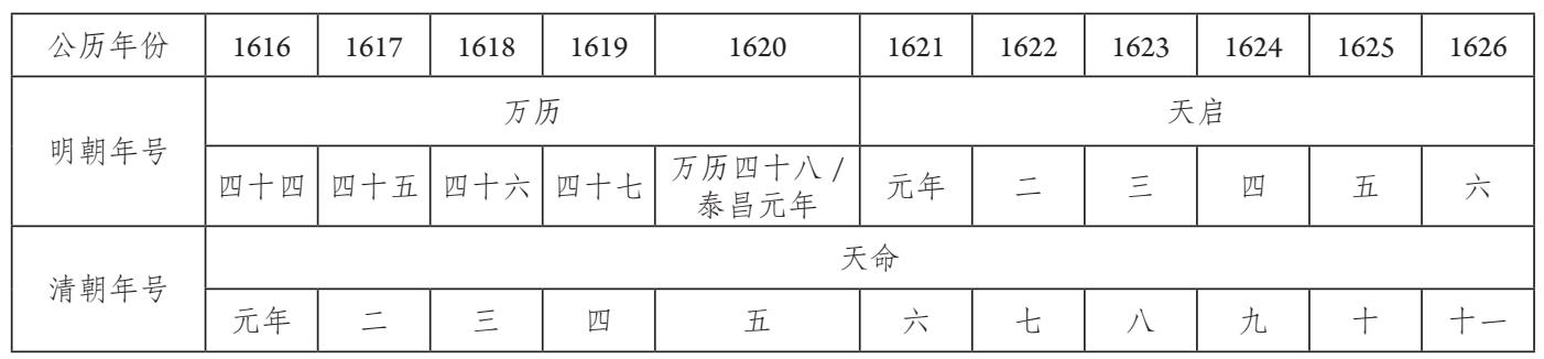 [10] 努尔哈赤时期明朝与后金的年号对应关系如下表。