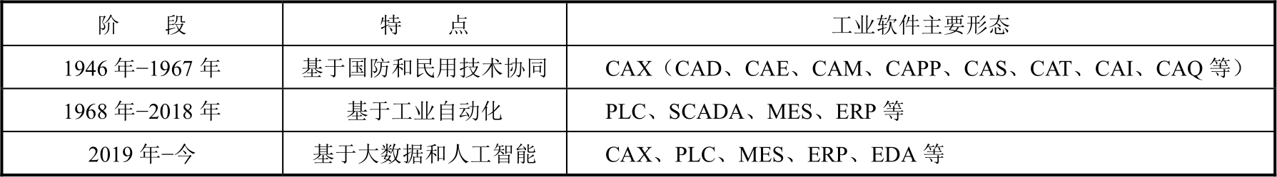 表1.1 国外工业软件发展历程的3个阶段