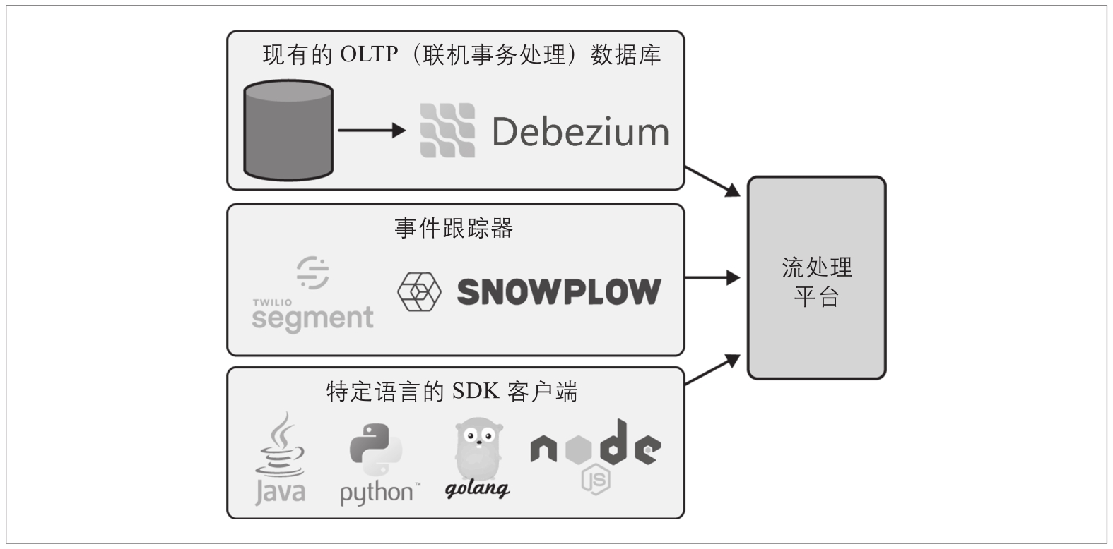 事件跟踪器能够根据Web和移动应用中的用户交互来捕获事件。借助其提供的平台和SDK,我们能够在代码中检测和标注事件生成点。只需触发事件,事件跟踪器便会捕获该事件并将其送往流处理数据平台。同时,事件跟踪器还负责处理异常情况、消息封装和流量控制机制。Segment和Snowplow是两个广受欢迎的事件跟踪解决方案。