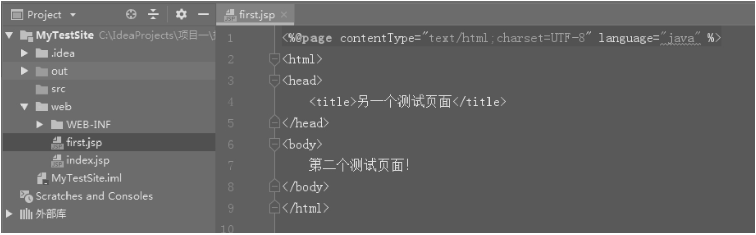 (2)根据之前介绍的项目需求,在另一个页面first.jsp中添加代码,实现另一个页面的功能,具体代码如下。