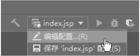 (1)在IDEA主工作界面的右上角单击下拉列表框,选择“编辑配置”列表项,如图1-38所示。