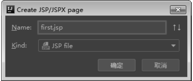 (2)在弹出的“Create JSP/JSPX page”对话框中,填写页面名称first.jsp,如图1-35所示。
