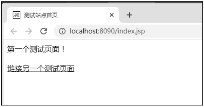 我们先来了解一下这个项目。一个Java Web的动态网站项目中包括两个页面:一个是站点的首页(index.jsp),如图1-29所示;另一个是单击首页中的链接后跳转的页面(first.jsp),如图1-30所示。