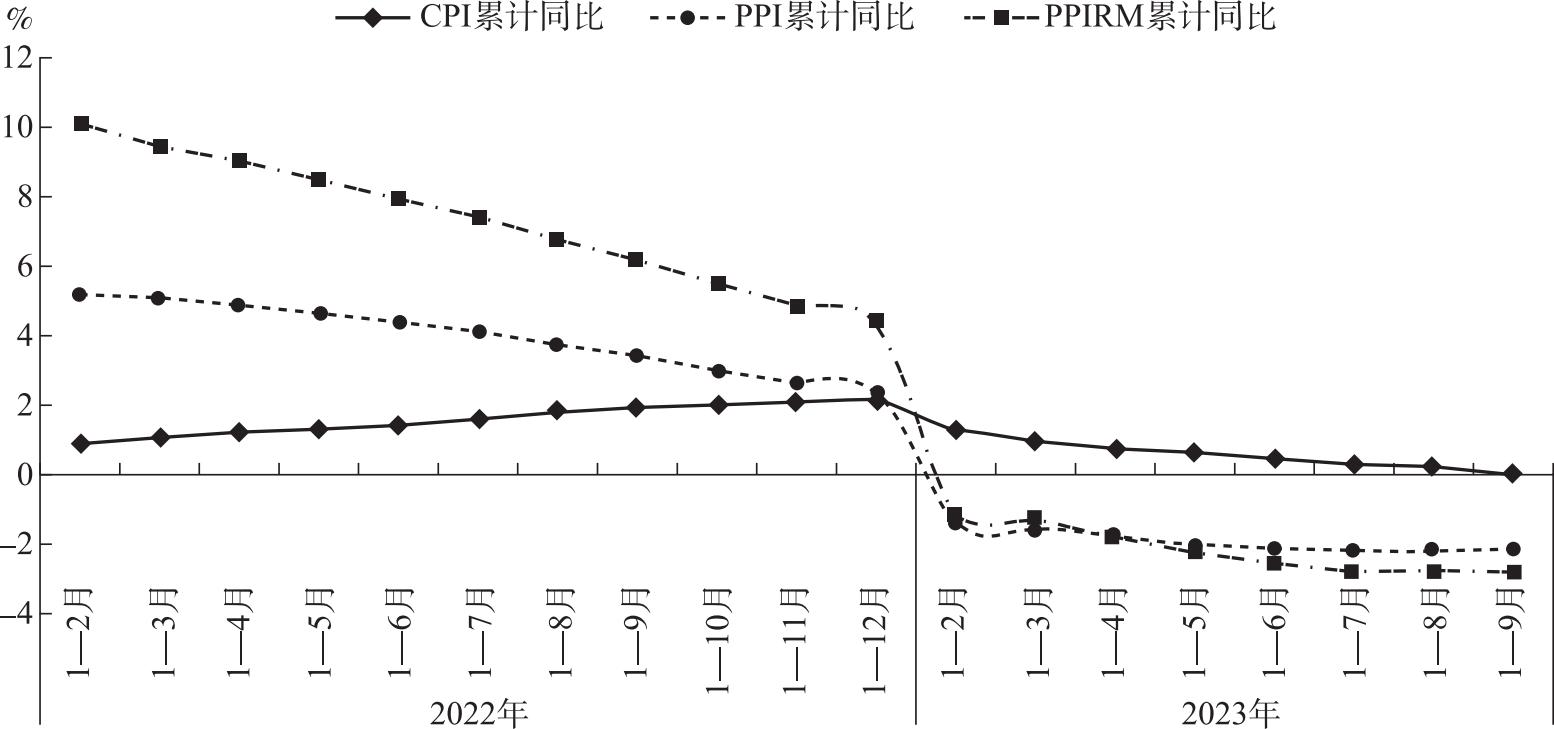 图3 2022年以来重庆CPI、PPI、PPIRM同比变化情况
