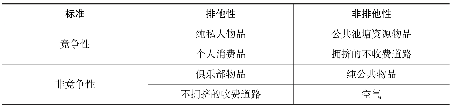 表2-2 公共物品的类型