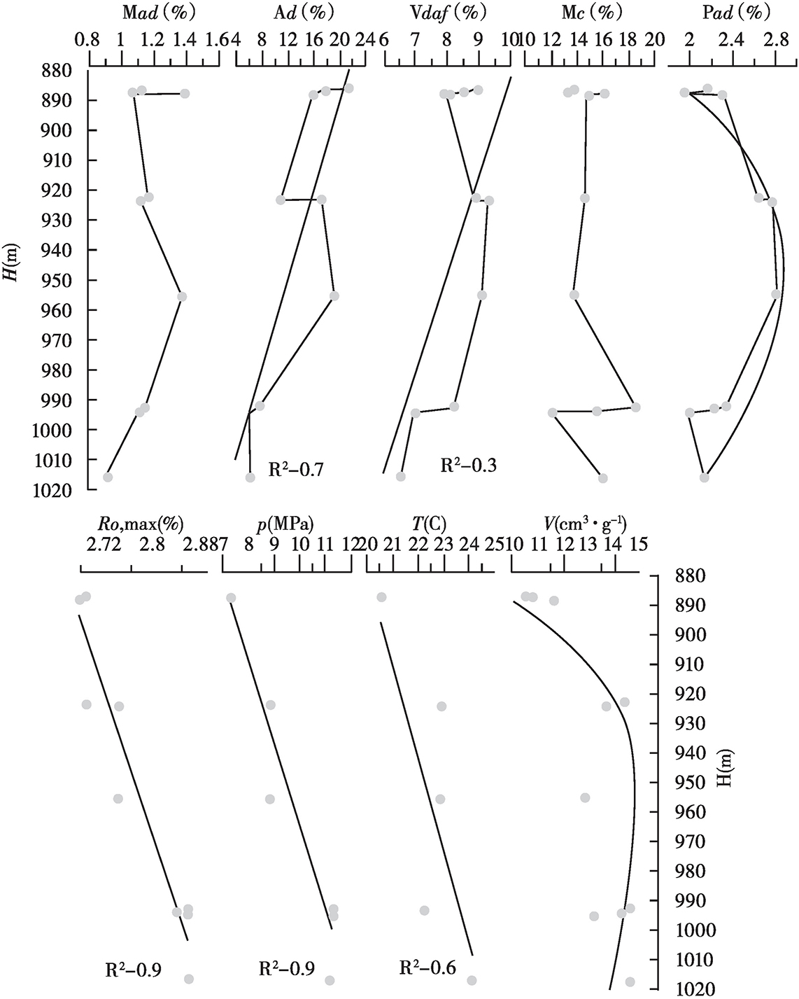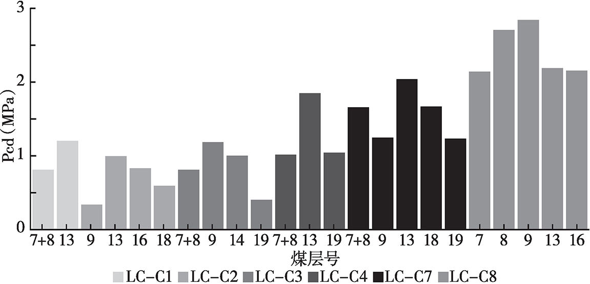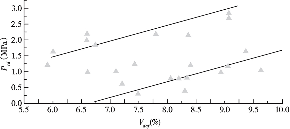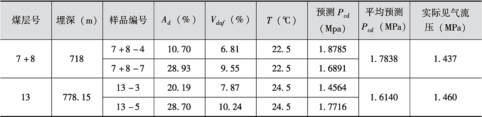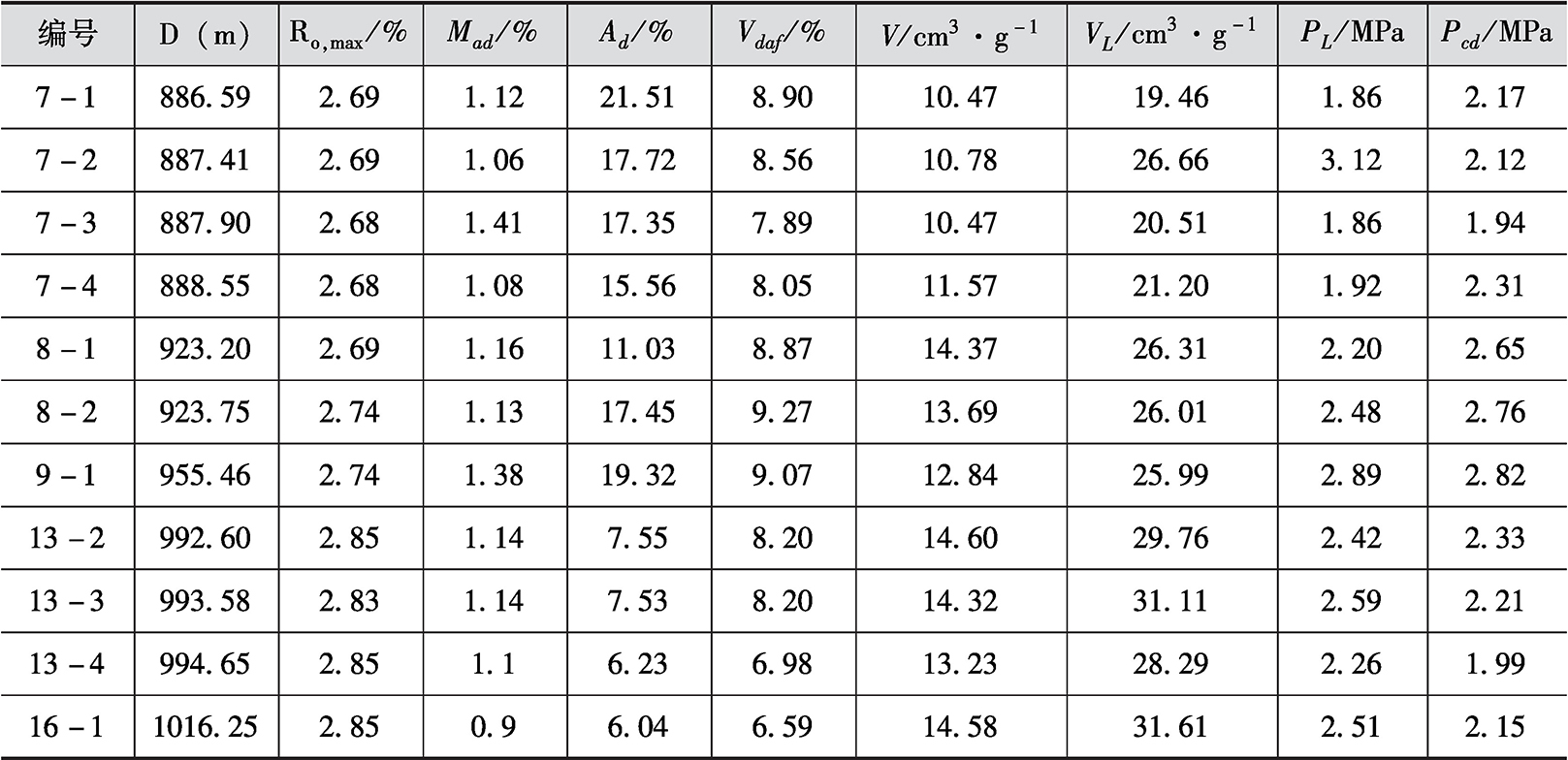 式中, P cd 为临界解吸压力,MPa; T 为储层温度,℃; A d 为灰分,%; V daf 为挥发分,%。