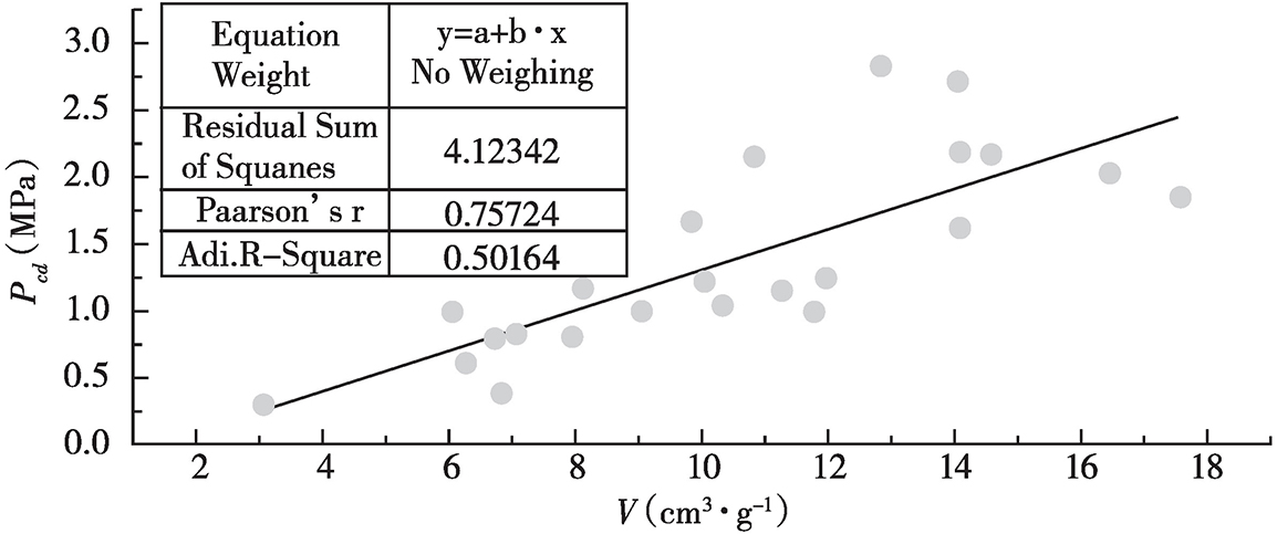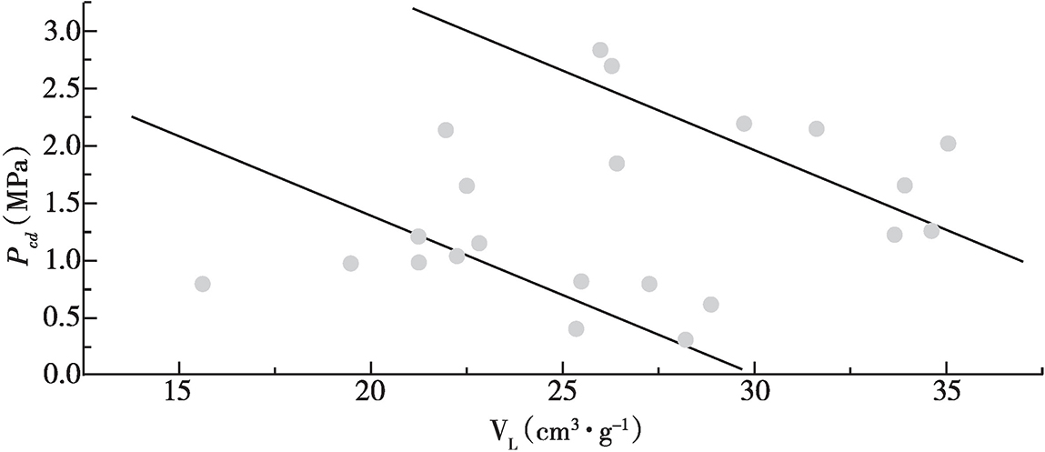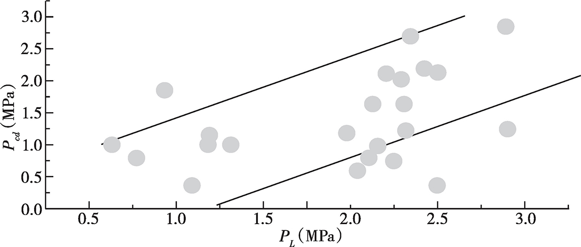 式中: P cd 为临界解吸压力,MPa; V L ,朗格缪尔体积,cm 3 ·g -1 ; P L ,朗格缪尔压力,MPa; V 实 ,实测含气量,cm 3 ·g -1 。