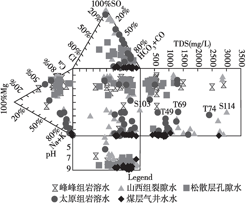 沉淀析出,因此煤系地层地下水表现出深层地下水的水质特征,HCO