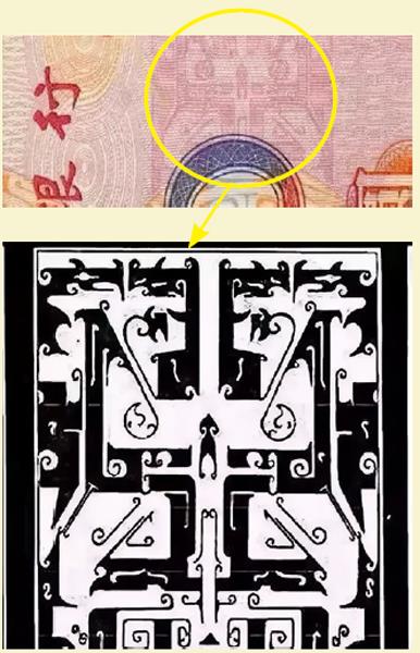 20元钱纸币正面,“中国人民银行”6个字下,有一双炯炯有神的眼睛,像牛的又不是牛的,像是没出现过的物种的。这是中国青铜器上最神秘迷人的纹饰——兽面纹。