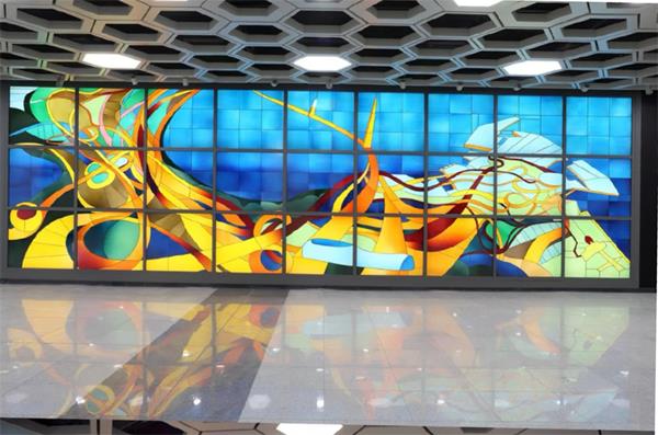 “生土礼赞”艺术展后来还被搬上了央视的《国宝·发现》栏目,播出后大家对玻璃艺术有了进一步的认识。谢文蒂渐渐有了名气。她受邀为深圳地铁机场站创作了公共艺术作品——《美丽新世界》。她用镶嵌玻璃艺术,完成了这件精美绝伦的作品。这是国内第一件镶嵌在地铁站里的玻璃艺术品。