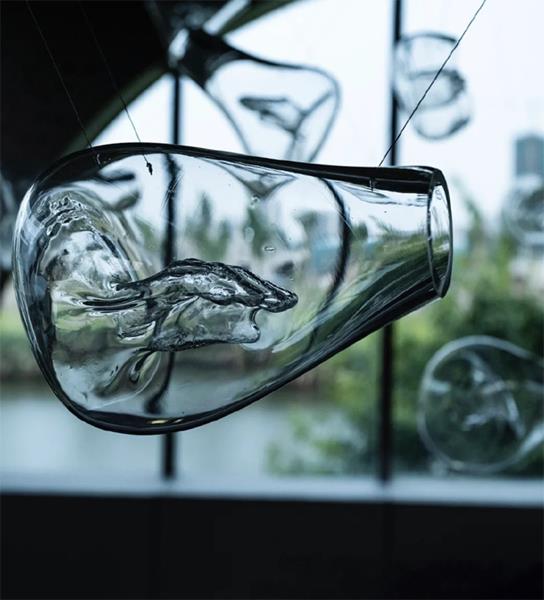 2021年春天,谢文蒂的新作品在北京重美术馆亮相,两个大展窗里,放置了她的10多件玻璃艺术品。谢文蒂想要给观众带来一场寻宝体验,让观众通过绳子的线索、镜子的反射等,去发现那些令人称奇的玻璃艺术品。