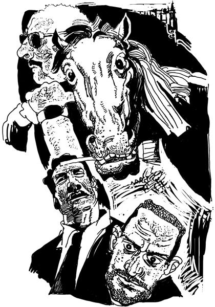 见我拒绝相信是那匹马画了所有的画,麦克法蒂什拿出一块空白的画布放在地上,并给了沃尔多一支笔。只见那畜生用牙咬住画笔,一边嘶鸣,一边画下了我见过的最令人心情沉痛的耶稣受难像。