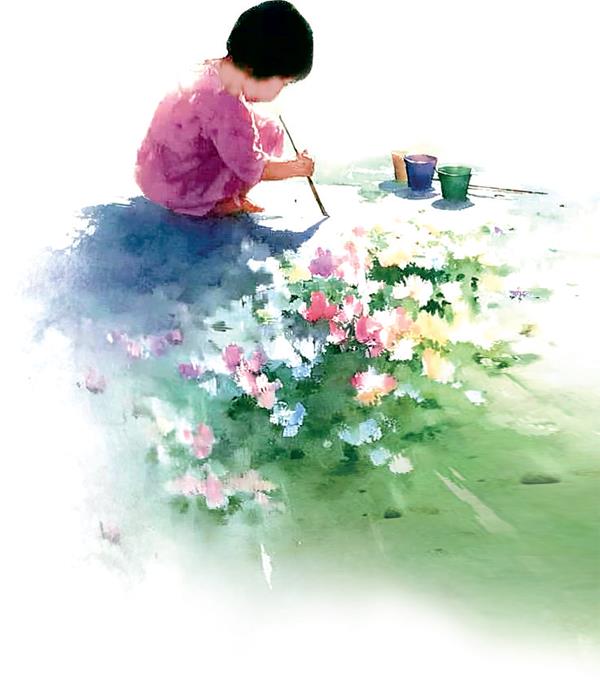 “我只负责一小部分。”她指着上方的一块墙壁,就是刚才忽然灿烂起来的那一米见方的区域,“真美,不是吗?”