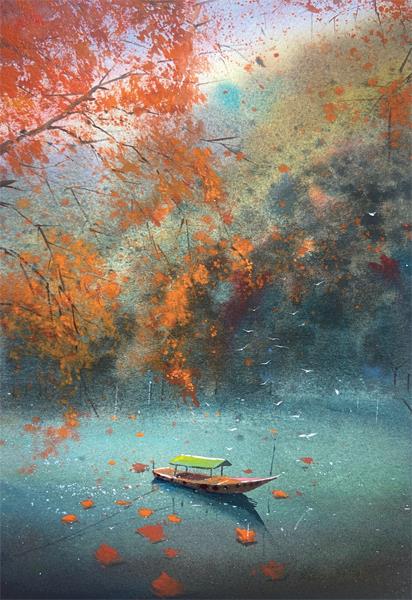 云生云落,变化使落叶分外妖娆。它们不躲朝雾,不躲黄昏,就在自己的阁楼中出众,保持着天生爱美的情操。并且在起起伏伏的风的缝隙里,将自己清洗得十分干净,释放出一种傲人的坚挺,借以表明自己纵然坠入凡尘,也能很好地演绎云淡风轻,或肩负使命。