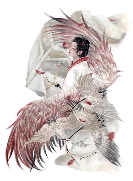 我想象御风而去、飞向天际的雪子,重新回归自己作为鸟的本来形态。她轻盈地落在海边的断崖上,细数闪着光泽的新生绒羽。东方泛白,盐沼上升起浓浓白雾,洁白如雪的仙鹤在缭绕雾气中,舒展羽翼,翩然起舞。