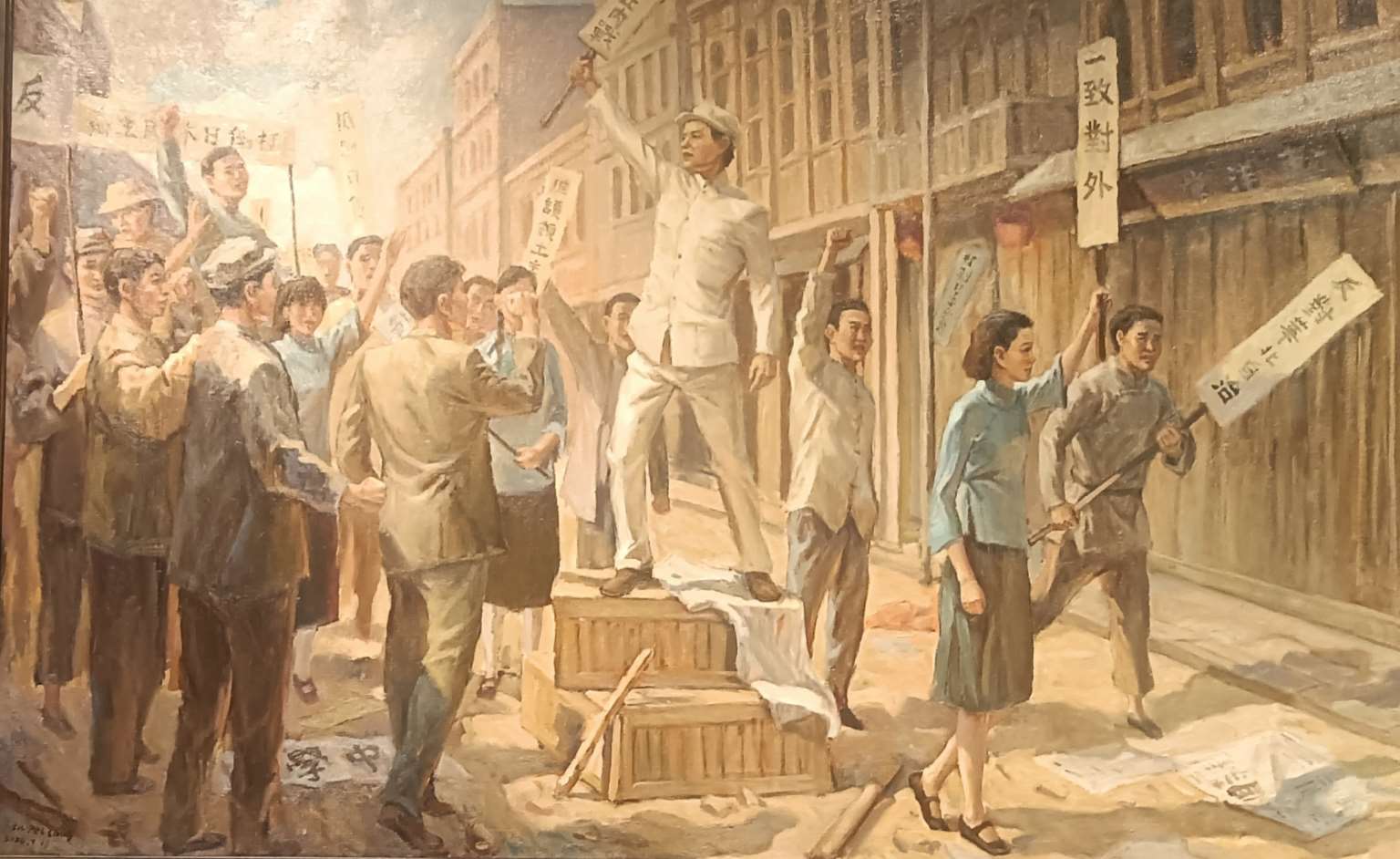 1936 年上学期开学后,温州中学在孙绍奎、孙经邃、洪彦霖等同学的领导下,继续开展学生抗日救亡运动工作。5 月 9 日为国耻日,温州中学全体学生上街游行示威,由孙经邃带队。先到瓯海中学(现温四中),队伍集结在校门口。高呼抗日口号,并进入该校礼堂,邀瓯中同学出去一起参加游行。但该校学生因受校方阻拦,只能聚集校内观望,不得出来。