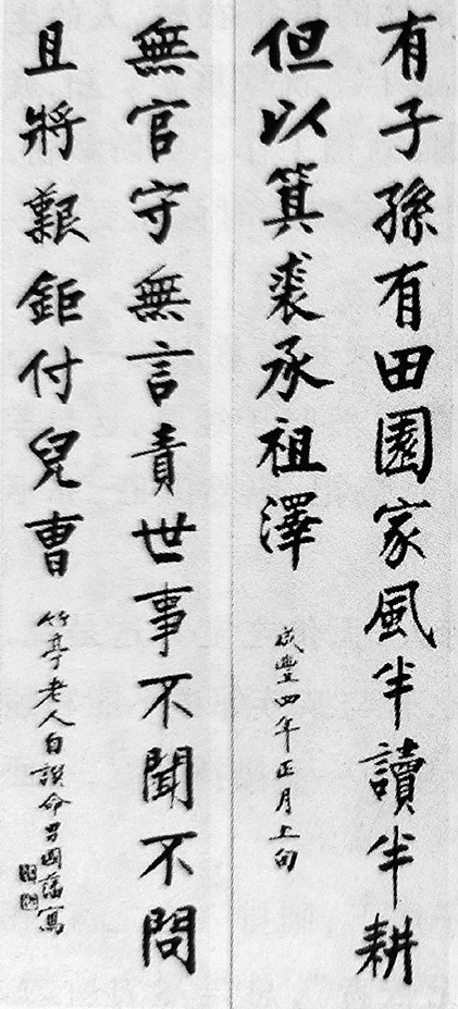 晚年的曾麟书命长子曾国藩书写的一副联语,颇能代表他的希望和寄托: