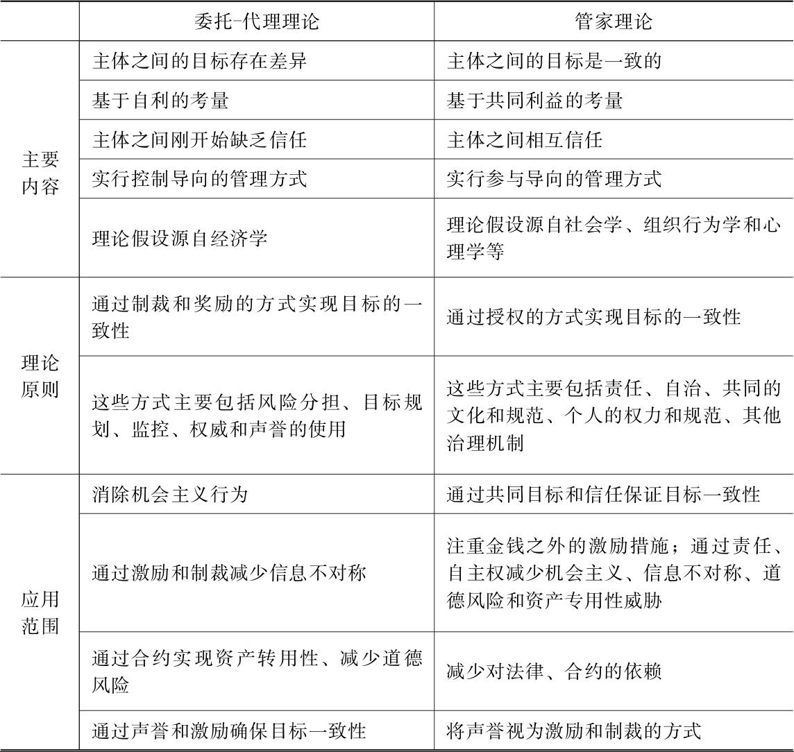 表4-1 委托-代理理论与管家理论的比较分析