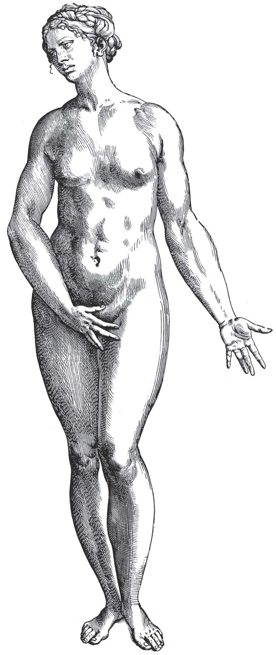 图1.4(下)安德烈亚斯·维萨里的“模范人体”(女性)