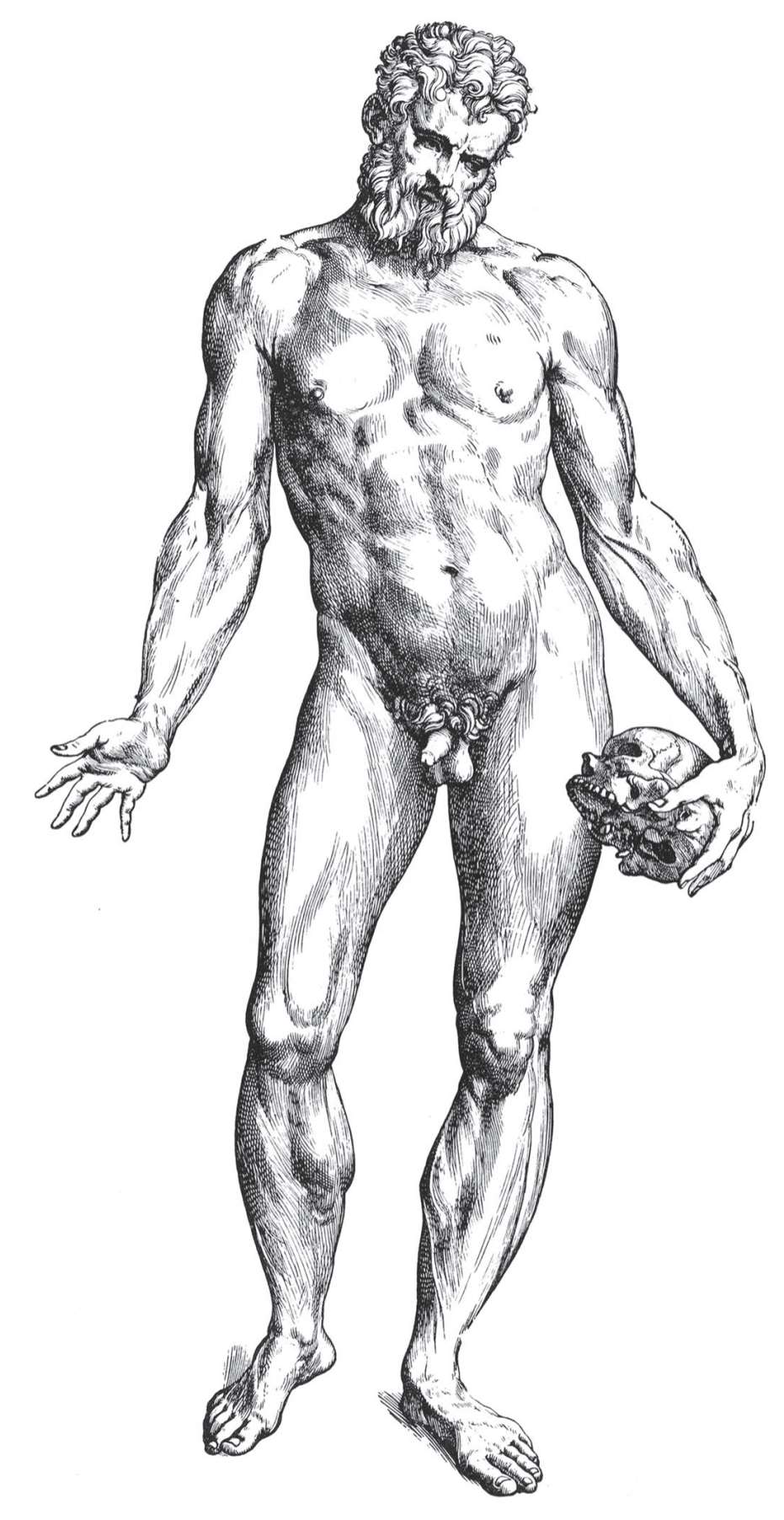 图1.4(上)安德烈亚斯·维萨里的“模范人体”(男性)