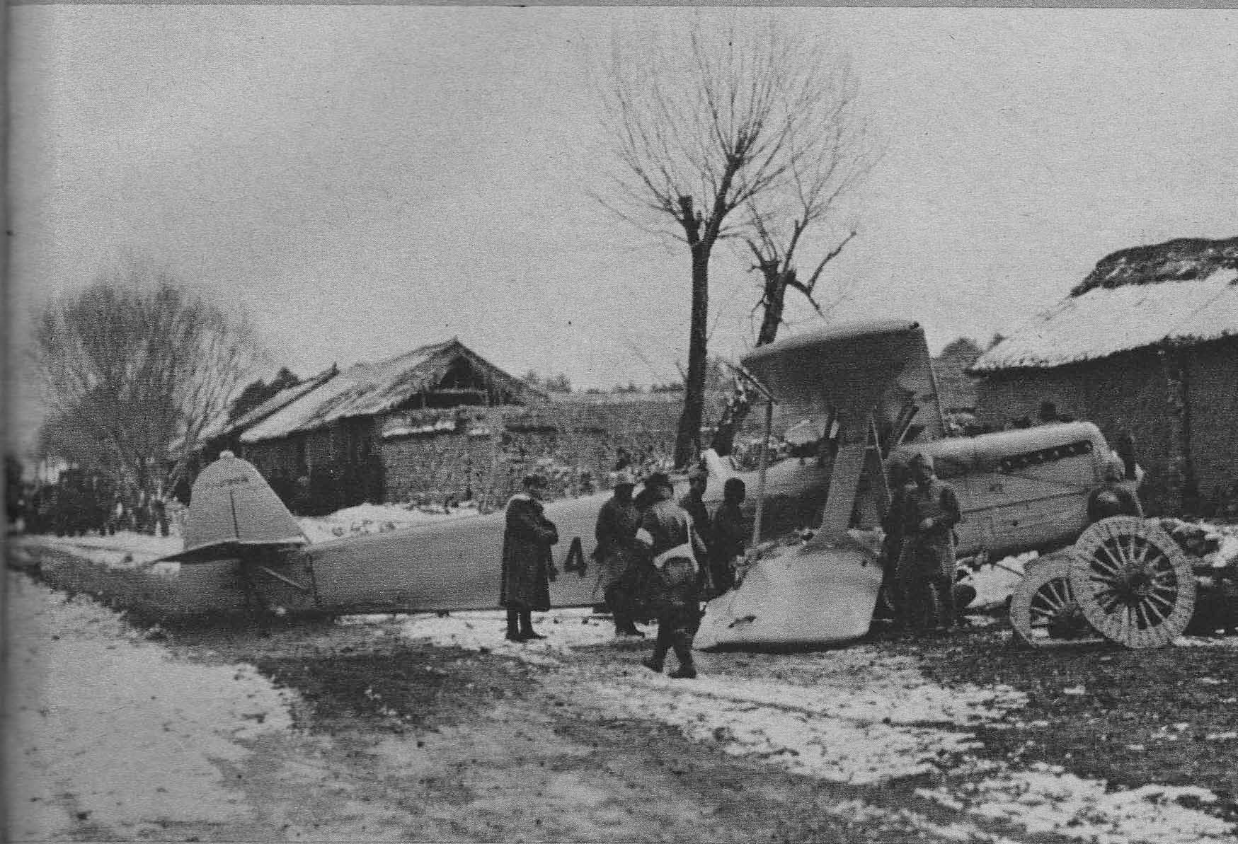 在长山峪战斗中,王以哲部击落的日军轰炸机。