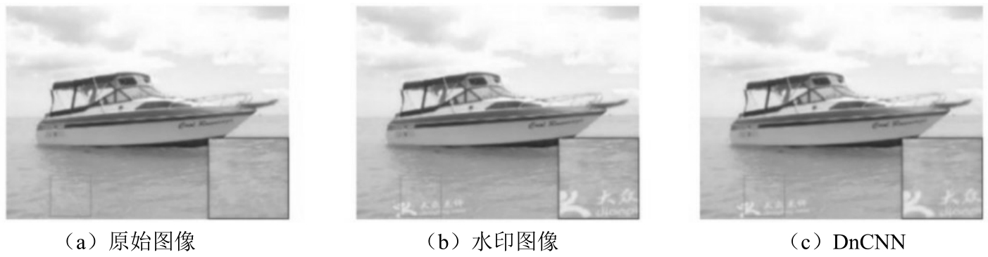 为保护文件版权,添加水印成为提高受保护文件安全性的一种流行方式。为了测试所添加水印的质量,可以采用水印去除技术。在水印去除过程中,集成先验信息和跨通道相关性可以修复受损通道图像信息,而最小可觉察误差可以估计水印去除质量。考虑到以前存在的文档扫描和背光页面的问题,Boyle等利用已知片段词典检测水印和去水印,克服文件损坏的影响。为了增强水印去除效果,Yang等利用离散余弦变换域和基于密钥矩阵融合来去除可见水印。此外,Makbol等将熵和边缘熵作为人类视觉系统(Human Visual System, HVS)特征,以快速提取水印特征并将水印去除。为提高水印去除算法的泛化能力,Ansari等使用小波变换提取水印特征,并利用所获得的特征对奇异值进行修正,测试所获得的水印的鲁棒性。Huynh等调整了垂直细节系数HL和水平细节系数LH之间的块差异,自动选择小波系数,从而提高水印去除质量。此外,傅里叶变换对水印去除也很有效。例如,Fares等使用傅里叶变换域去除水印图像中的R、G和B水印,这是盲彩色图像水印去除的优秀工具。考虑到鲁棒性和不可感知性,研究人员确保了载体图像能够最大化嵌入强度的信噪比,从而在图像去水印过程中对鲁棒性和不可感知性进行权衡。虽然这些方法在水印去除方面表现良好,但存在如下缺点:①需要采用复杂的优化方法来增强水印去除效果;②为了提高水印去除性能,需要手动选择参数。为了克服这些缺点,可以使用深度学习技术,特别是CNN来实现水印去除。