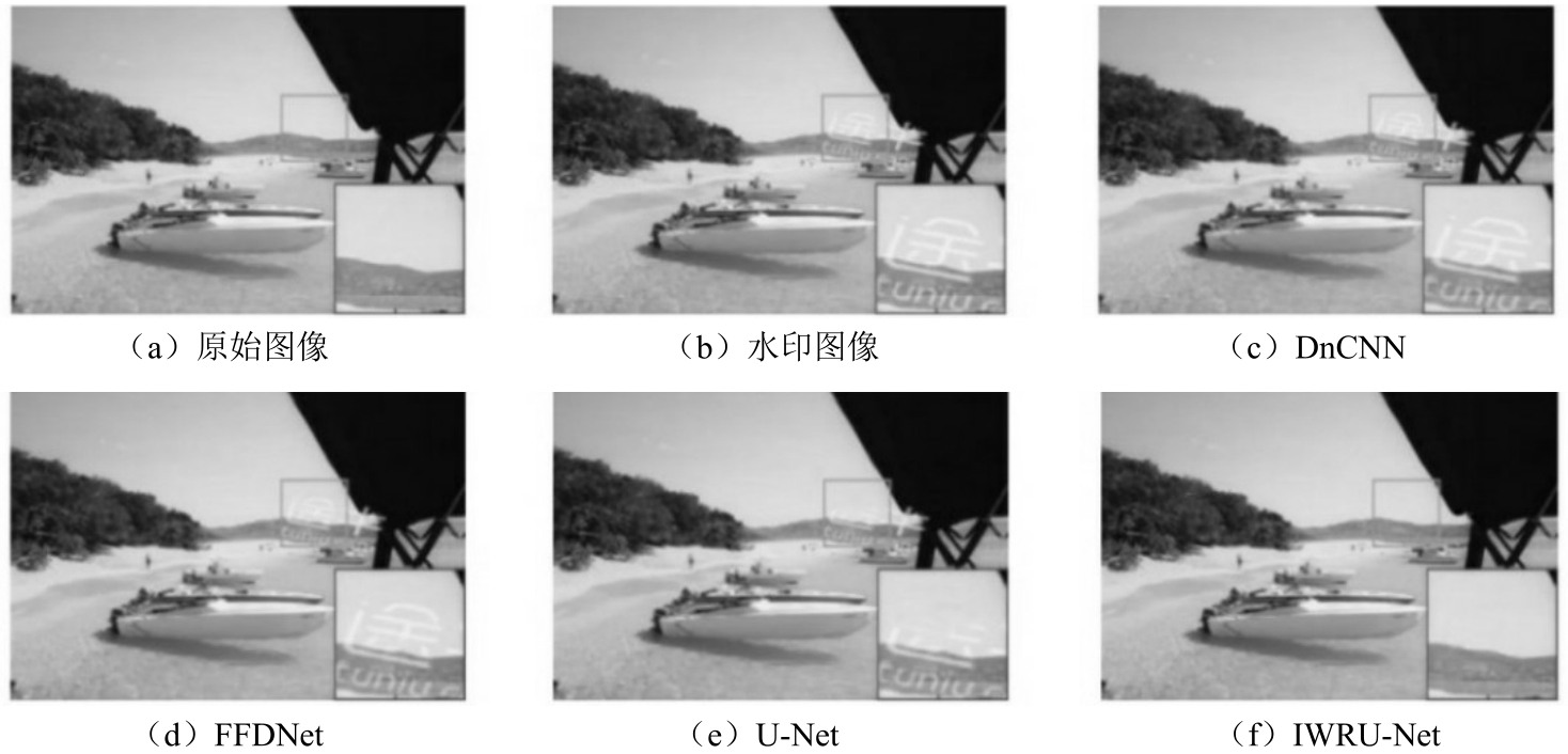 为保护文件版权,添加水印成为提高受保护文件安全性的一种流行方式。为了测试所添加水印的质量,可以采用水印去除技术。在水印去除过程中,集成先验信息和跨通道相关性可以修复受损通道图像信息,而最小可觉察误差可以估计水印去除质量。考虑到以前存在的文档扫描和背光页面的问题,Boyle等利用已知片段词典检测水印和去水印,克服文件损坏的影响。为了增强水印去除效果,Yang等利用离散余弦变换域和基于密钥矩阵融合来去除可见水印。此外,Makbol等将熵和边缘熵作为人类视觉系统(Human Visual System, HVS)特征,以快速提取水印特征并将水印去除。为提高水印去除算法的泛化能力,Ansari等使用小波变换提取水印特征,并利用所获得的特征对奇异值进行修正,测试所获得的水印的鲁棒性。Huynh等调整了垂直细节系数HL和水平细节系数LH之间的块差异,自动选择小波系数,从而提高水印去除质量。此外,傅里叶变换对水印去除也很有效。例如,Fares等使用傅里叶变换域去除水印图像中的R、G和B水印,这是盲彩色图像水印去除的优秀工具。考虑到鲁棒性和不可感知性,研究人员确保了载体图像能够最大化嵌入强度的信噪比,从而在图像去水印过程中对鲁棒性和不可感知性进行权衡。虽然这些方法在水印去除方面表现良好,但存在如下缺点:①需要采用复杂的优化方法来增强水印去除效果;②为了提高水印去除性能,需要手动选择参数。为了克服这些缺点,可以使用深度学习技术,特别是CNN来实现水印去除。