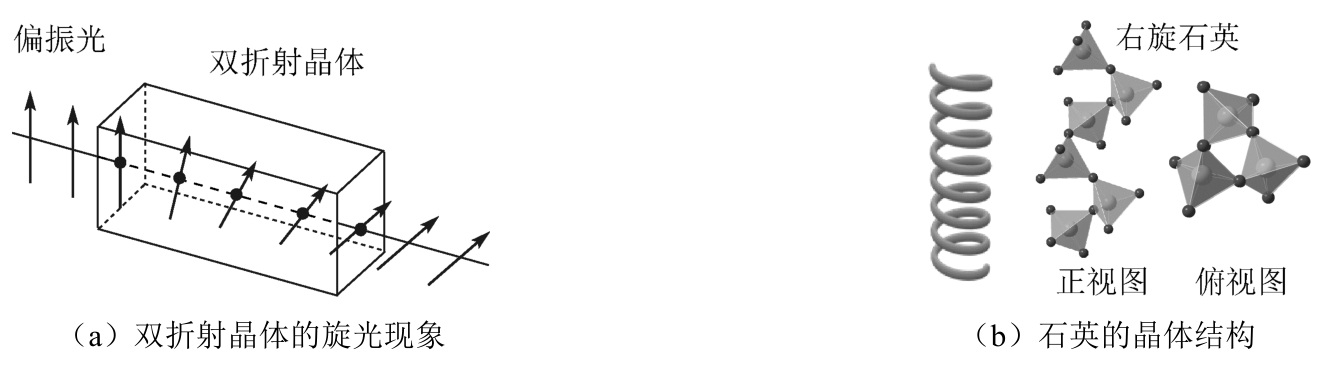 图2-10 双折射晶体的旋光现象及石英的晶体结构