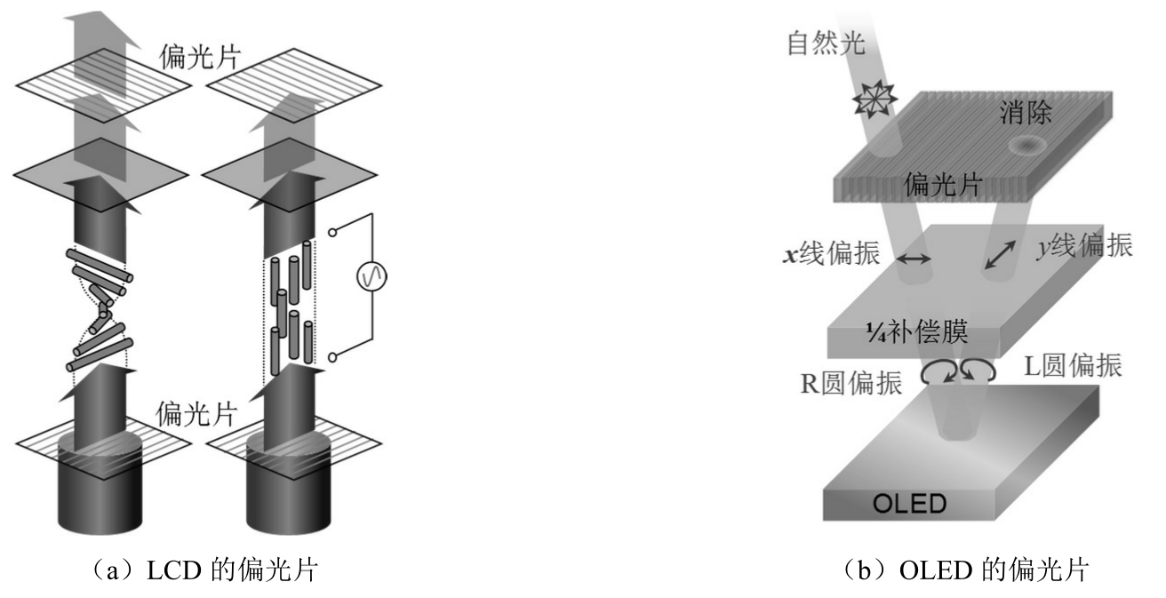图2-7 偏光片在LCD和OLED显示屏中的应用