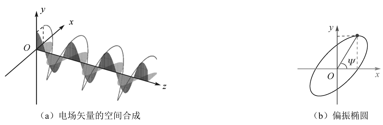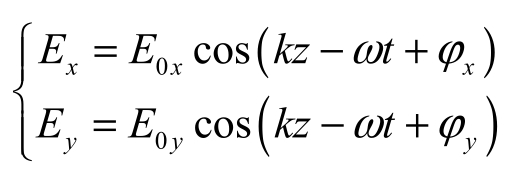 光作为电磁波,在垂直于传播方向 z 上的任一电场矢量都可以分解为 x 和 y 方向上的两个正交矢量,光的偏振态或电场矢量可以用这两个正交矢量的和来表示。假设电磁波 E ( z , t )的 x 、 y 方向正交电场分量分别为