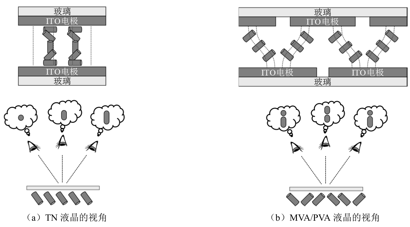 图2-34 TN液晶与MVA/PVA液晶的视角对比