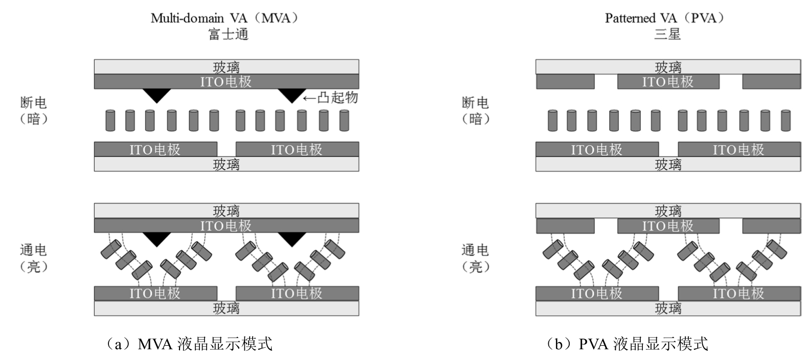 图2-33 MVA液晶显示模式与PVA液晶显示模式的结构示意图