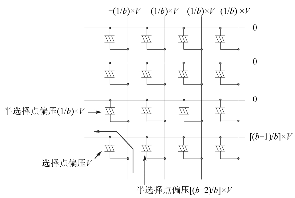 为偏压比,即选择点与非选择点电压值比。这样就能将半选择点偏压、非选择点偏压控制在阈值电压以下。例如,当
