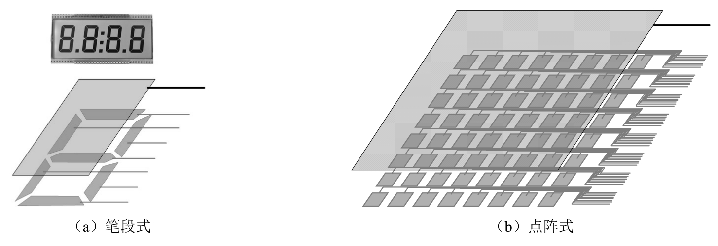 静态驱动需要的驱动单元较多,只适用于显示单元少的LCD,例如图2-40所示的笔段式和点阵式LCD。