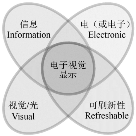 首先,信息。这里的信息至少应该包括多位的信息,即多个字节,可以是文字、图像、视频等多媒体格式的数据。其次,电(或电子)。电作为信号输入,输入需要的信息数据。再次,视觉/光。通过将电信号转化为光信号,进行数据的输出,实现视觉信息的呈现。最后,可刷新性。这意味着信息不会永久地保留,而是可以被更新、更改或临时存储。只有4个要素同时满足,才能够准确定义电子视觉显示,这也是本书要探讨的显示技术类别。下面具体讨论4个要素的意义。