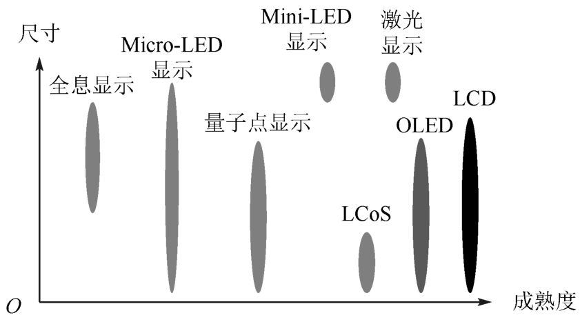 图1-16 LCD和部分新型显示技术的对应尺寸和成熟度
