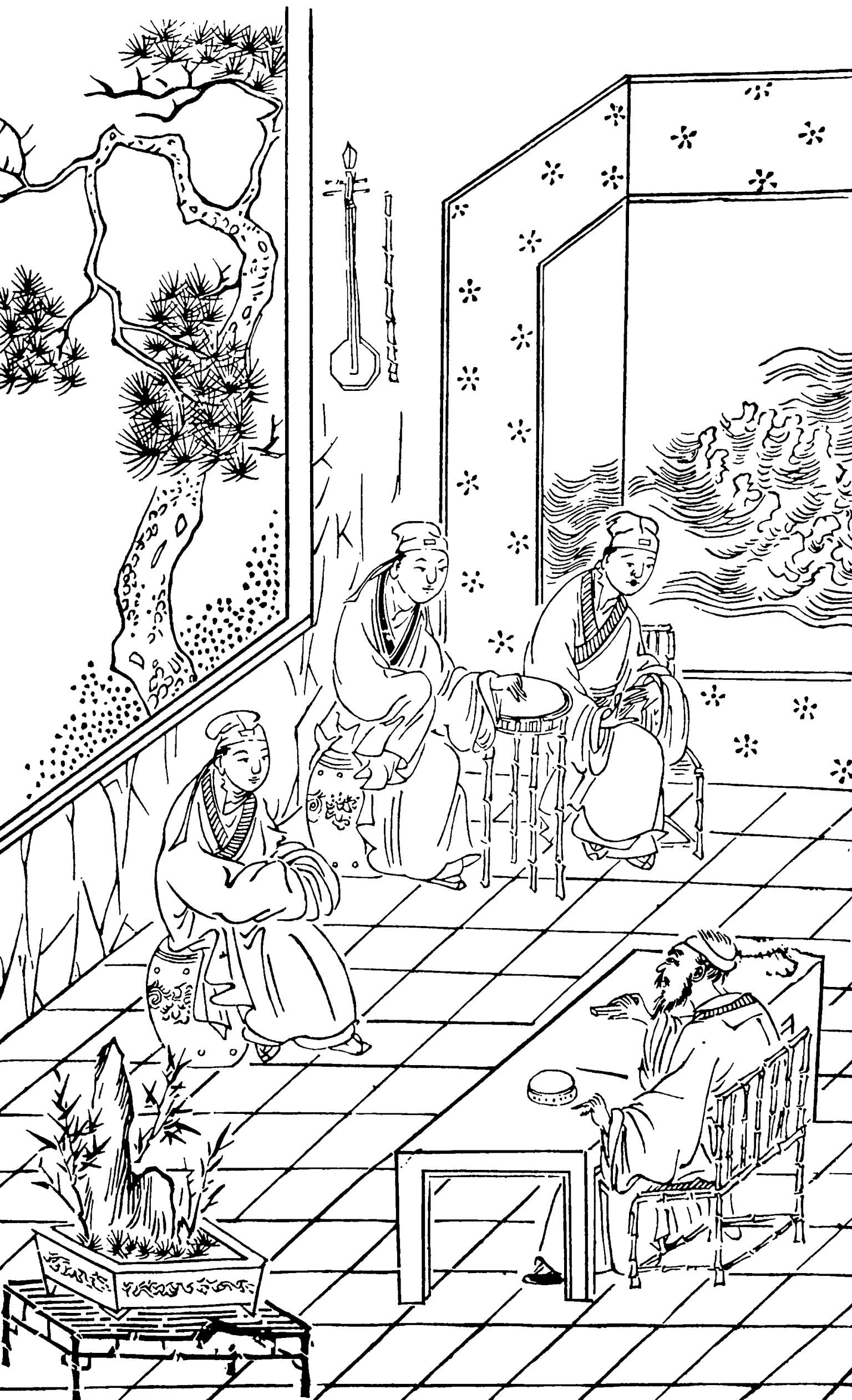 〔见介〕原来是陈、吴二位相公,老汉失迎了!〔问生介〕此位何人?〔末〕这是敝友河南侯朝宗,当今名士,久慕清谈,特来领教。〔丑〕不敢不敢!请坐献茶。〔坐介〕〔丑〕相公都是读书君子,甚么《史记》《通鉴》,不曾看熟,倒来听老汉的俗谈。