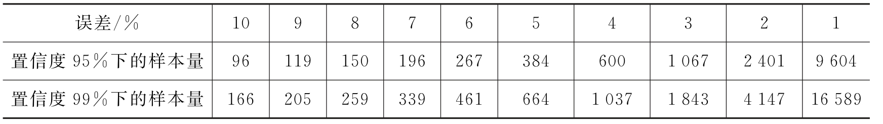 表3-4 简单随机抽样中不同样本数量下的误差水平