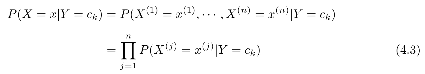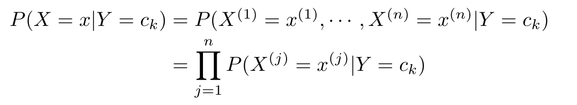 朴素贝叶斯法对条件概率分布作了条件独立性的假设。由于这是一个较强的假设,朴素贝叶斯法也由此得名。具体地,条件独立性假设是