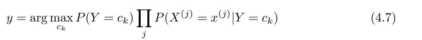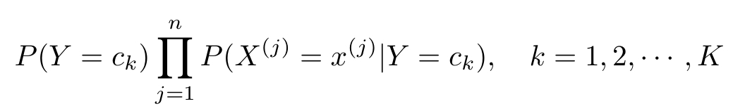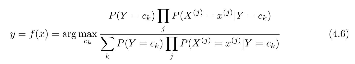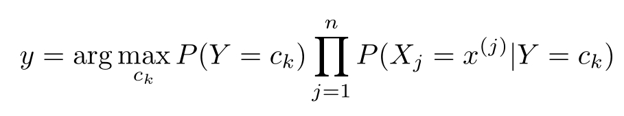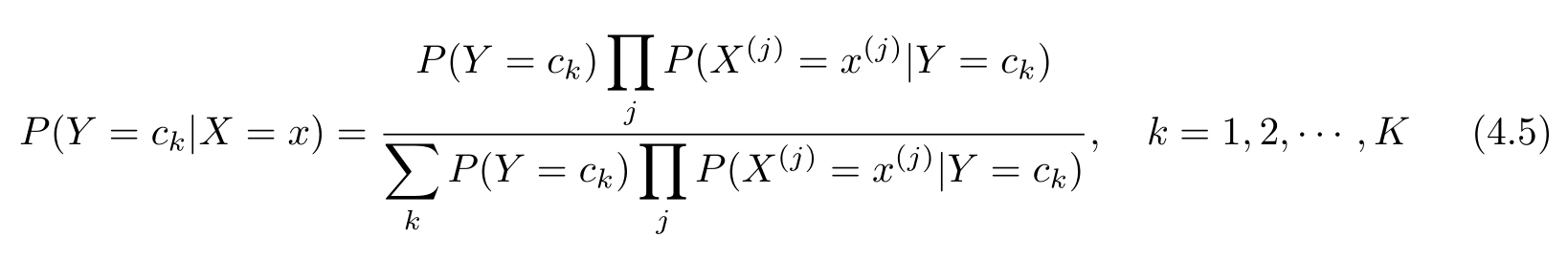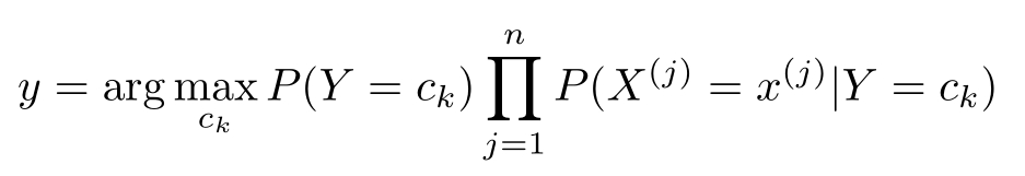 这是朴素贝叶斯法分类的基本公式。于是,朴素贝叶斯分类器可表示为