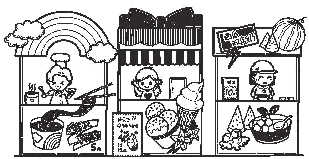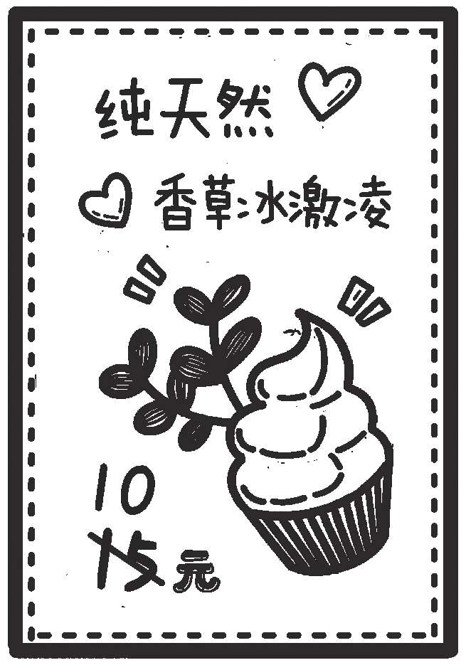 “哇,卖出了不少冰激凌哦!”我的钱还没有花完,也想再尝尝妈妈这次做的冰激凌,于是准备支持一下妈妈的摊位。“咦,妈妈您降价了啊?”我发现妈妈用黑色马克笔把海报上的价格从每杯15元改成了10元。