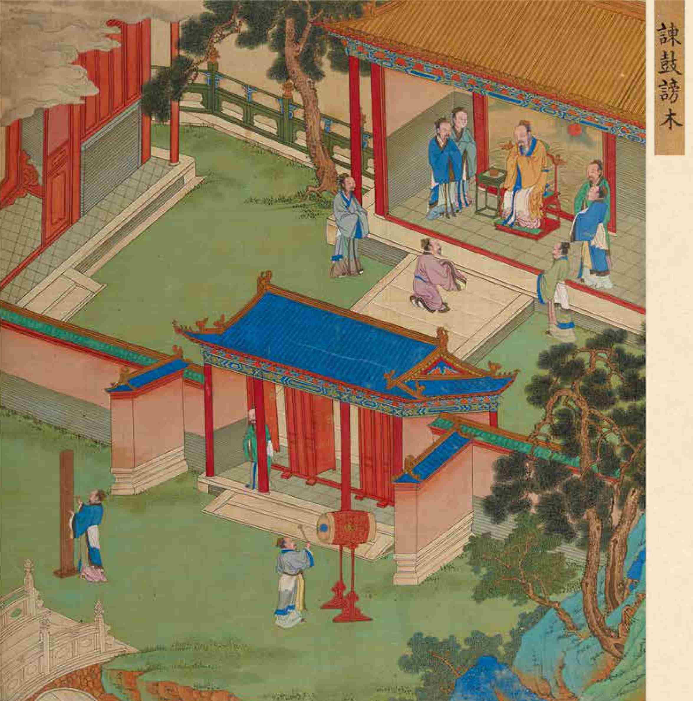 Setting Up a Drum and Wood Boards to Collect Suggestions As the leader of the union of tribes, Yao was open to advice and suggestions from all sides. He set up a drum outside his residence for the people to hit should they wish to offer suggestions in person, and erected wood boards along traffic arteries for the people to write about his defects in state governance. He ruled with political integrity, led the people to a prosperous and contented life, and won respect and obedience from all tribes.